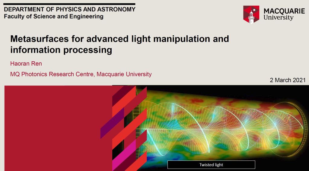 Dr Ren was invited to give a talk at the Korea-Australia Nanophotonics Remote Lectureship.