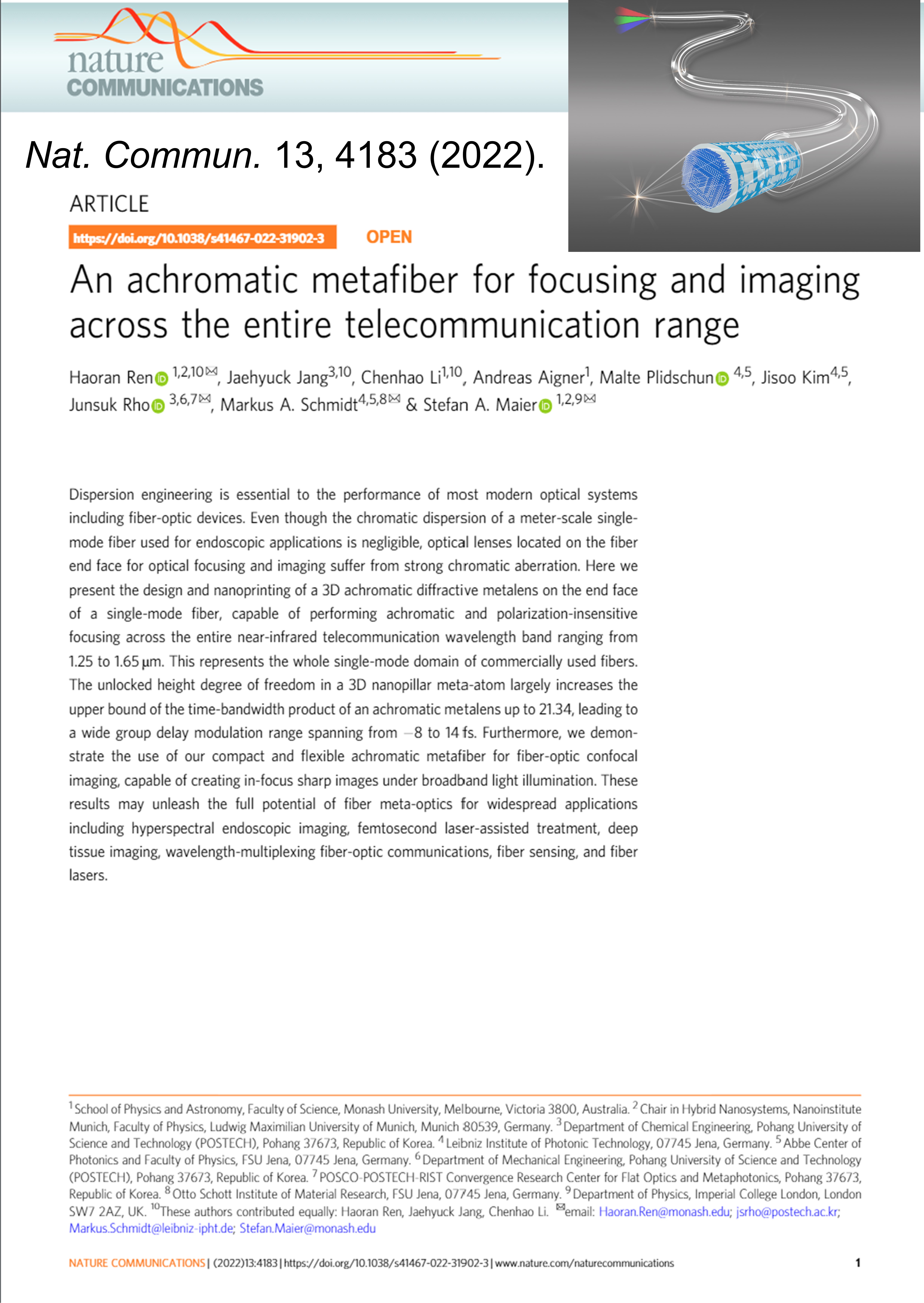 Dr Ren recently gave a talk to SPIE webinar on 3D metafibre optics